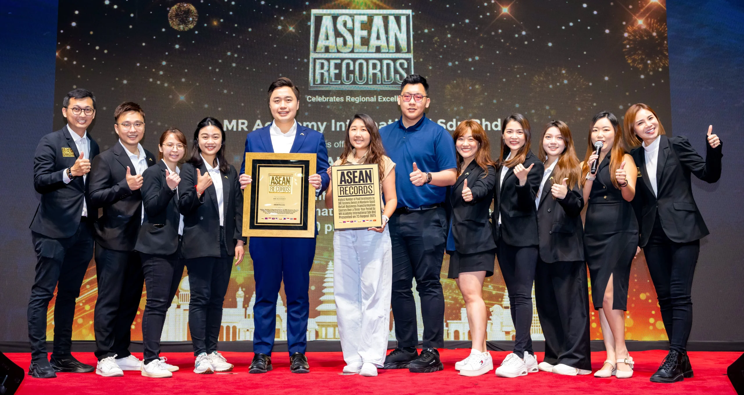 2025年8月,MR商企学院荣获ASEAN Records官方认证,获颁「三年期间华语门市企业转型课程中小企业付费学员累积最多」殊荣,成为马来西亚零售教育领域中备受国际认可的领导机构。